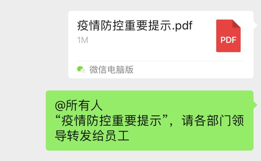 充分利用微信群、公眾號(hào)等網(wǎng)絡(luò)平臺(tái),加強(qiáng)防控宣傳和監(jiān)督。及時(shí)提醒廣大員工做好自我防護(hù),自覺(jué)戴口罩、勤洗手,不聚集,防疫工作一刻不能放松。