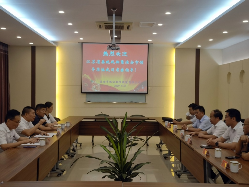 2021年9月15日,江蘇省委統(tǒng)戰(zhàn)部副部長、省工商聯(lián)黨組書記顧萬峰率統(tǒng)戰(zhàn)部經(jīng)濟處處長馬曉光等領(lǐng)導(dǎo)調(diào)研我司。 淮安振達公司董事長曲振元、常務(wù)副總喬軍、行政副總榮益民、總助楊敏熱情接待了顧書記一行。